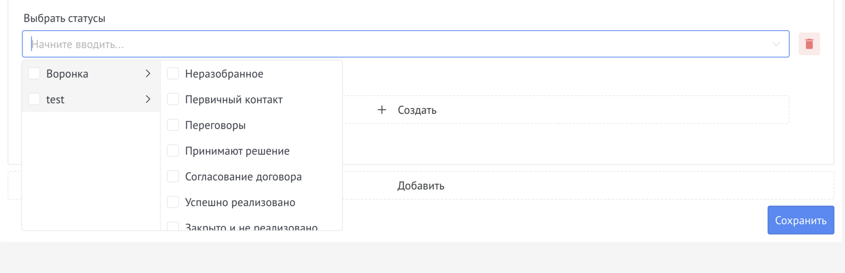 If necessary, select the funnel/stage(s) in which the checklist will be displayed when a deal hits