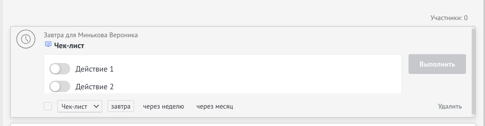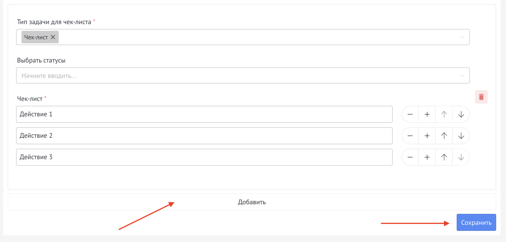 If necessary, click on “+” and enter another action, you can add an unlimited number of actions